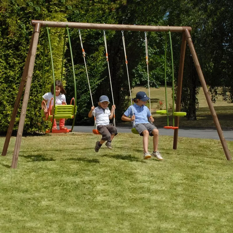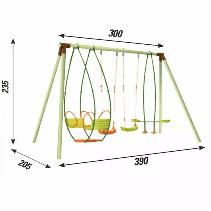 A seconda delle preferenze, l'altalena è composta da due seggiolini singoli, un cavalluccio ed un dondolo.