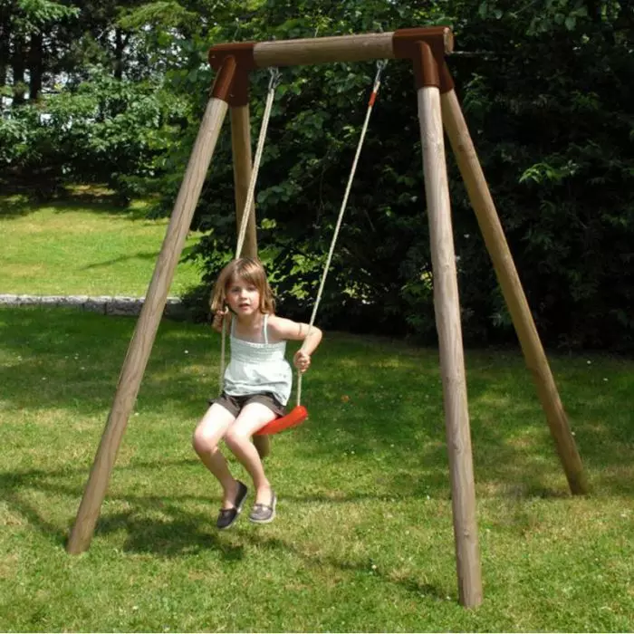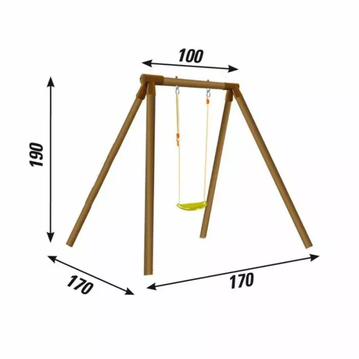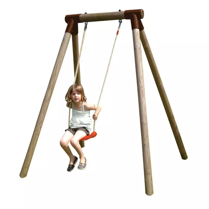 L'altalena singola in legno VIOLETTA è perfetta per piccoli giardini e permette al vostro bambino di giocare in totale sicurezza, grazie all'installazione di ganci brevettati.