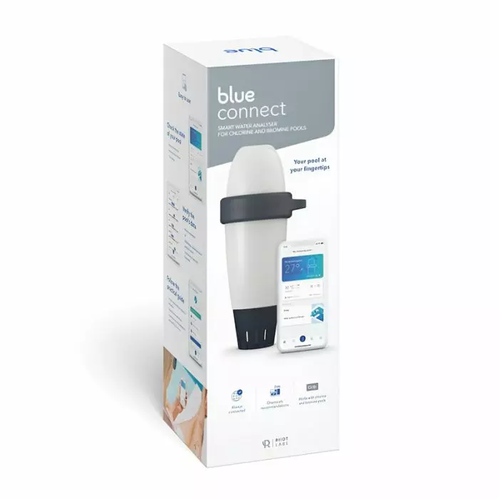 Il nuovo analizzatore Blue Connect Go, è un dispositivo loT che combina il sensore della qualità dell'acqua con un algoritmo intelligente che unisce dati precisi sullo stato dell'acqua, sui valori dei prodotti chimici e sulla temperatura.