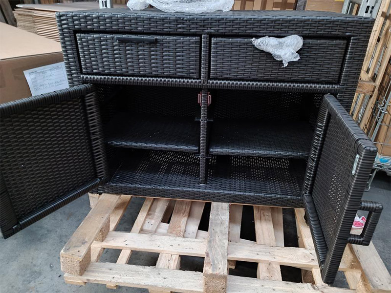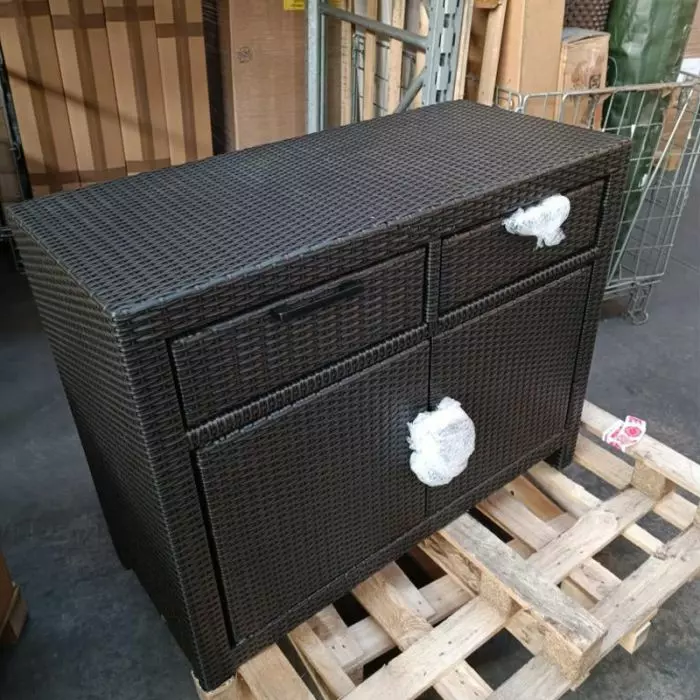 Armadio da esterno in wicker con 2 ante e 2 cassetti