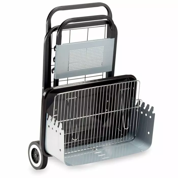 Una volta chiuso, questo barbecue è pieghevole, per essere riposto senza occupare spazio, e può anche essere appeso.
