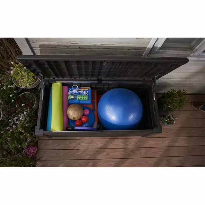 Questo baule offre un'ottima capacità di 454 L, ma può servire anche come panca in grado di ospitare due adulti, con una portata massima di ben 300 kg.