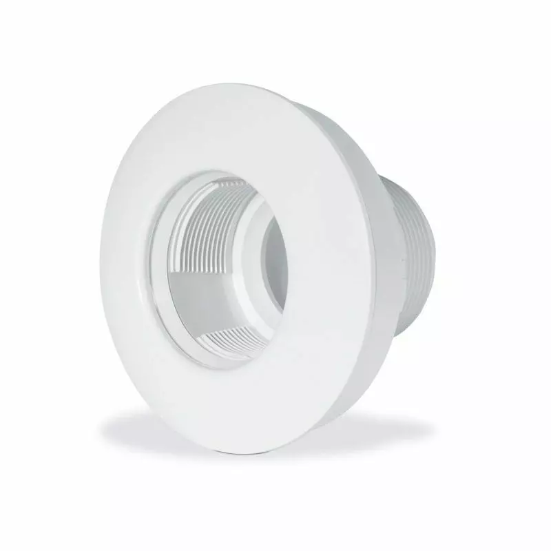Bocchetta a parete di Aqua realizzata in ABS bianco per piscine in pannelli d'acciaio con membrana in PVC.