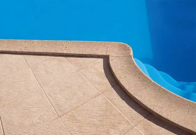Bordo piscina di produzione italiana, atermici, anti-gelivi ed eco-compatibili, risultato di anni di ricerca, sono realizzati in pietra ricostruita con marmo di primissima scelta appositamente selezionato.