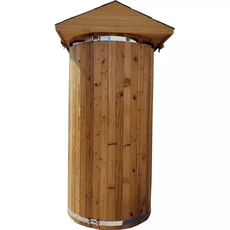 Cabina doccia da esterno LUCILLE Ø 1,00 x h 2,20 m, con luce interna - LEGNO ABETE