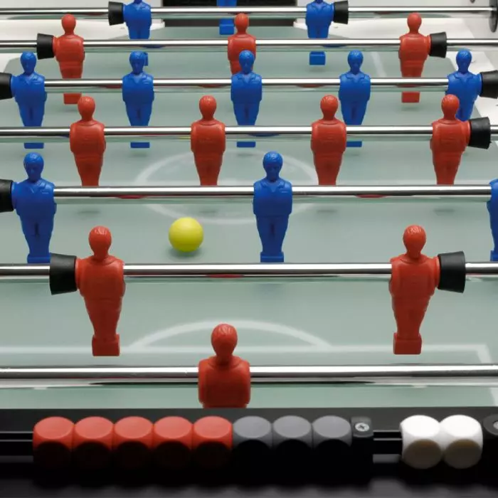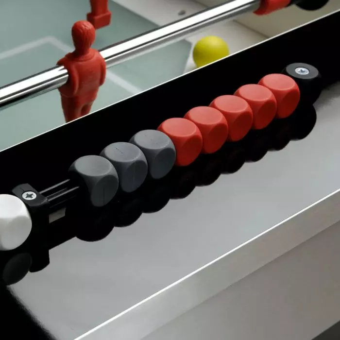 Le caratteristiche rispecchiano quanto previsto dai regolamenti: piedini di regolazione nelle quattro gambe per avere sempre il piano di gioco perfettamente pari, gomme nelle aste in acciaio (al posto delle molle), segnapunti da torneo con indicazione dei set di gioco e dei goal. Le manopole hanno impugnatura ergonomica e sono in plastica. Gli ometti sono rossi e blu, indistruttibili e fissati alle aste con stampaggio diretto e le aste, così come i cuscinetti, sono in acciaio.