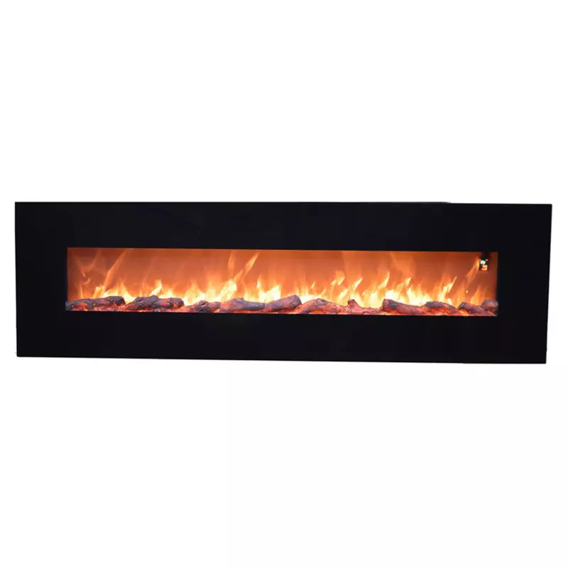 Caminetto elettrico a parete con tecnologia a LED per ricreare la fiamma e le braci incandescenti di un vero e proprio camino, donando così all'ambiente un'atmosfera accogliente e confortevole.