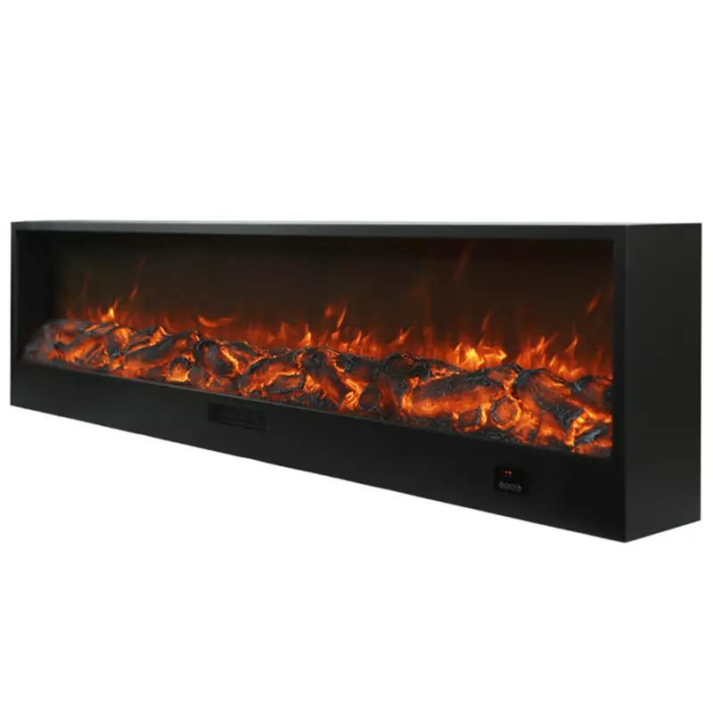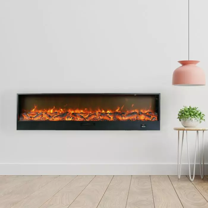 Caminetto elettrico a parete che dona all'ambiente un'atmosfera accogliente e confortevole, ricreando la fiamma e le braci incandescenti di un vero e proprio camino,
