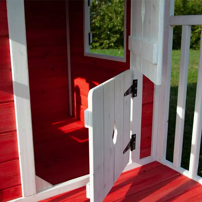 La casetta in legno per bambini ANNY, in legno di abete impregnato colore rosso, è una vera e propria casa a misura di bambino. Dotata di 2 finestre laterali con persiane e 1 frontale fissa, la porta in stile stalla ha due aperture basculanti a spinta e un tetto spiovente in perlinato. Il punto di forza di questa casetta è il suo interno completamente pavimentato e un piccolo porticato non rialzato con ringhiere laterali.