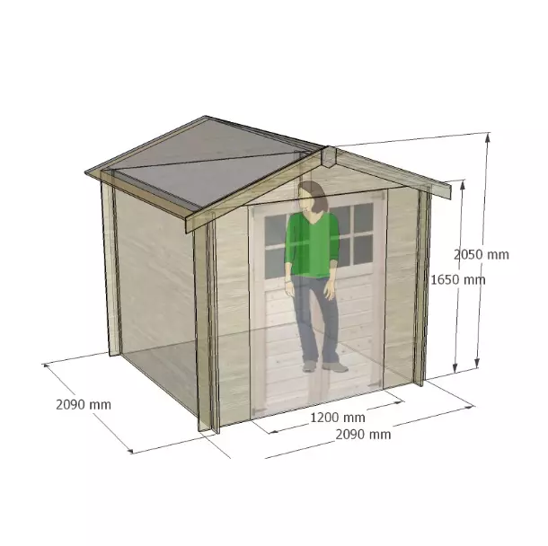 • Dimensioni esterne con sporgenza tetto: L 230 x P 213 cm (superficie 4,90 m2)