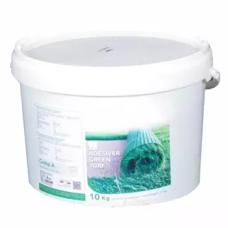 Adesivo completamente assente da acqua e solventi per l'incollaggio delle bande di giunzione tra i teli di erba finta posti all'interno e all'esterno anche in presenza di umidità residua.
