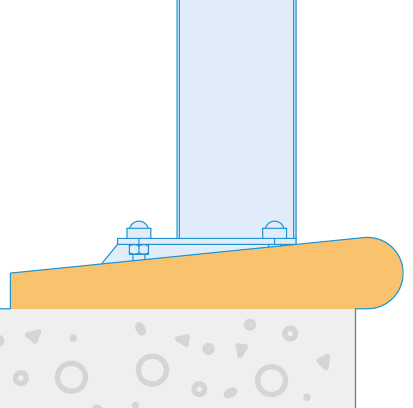 (B) - Fibbia antisollevamento fissata allo strato di livellamento tramite un supporto a squadra