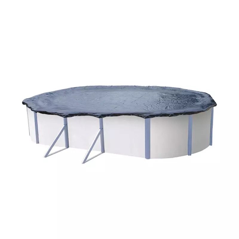 Copertura di protezione di 90 gr/m² per piscine di forma ovale, ideale per preservare l'acqua dallo sporco e dalle foglie, proteggendo così anche il bordo della struttura.