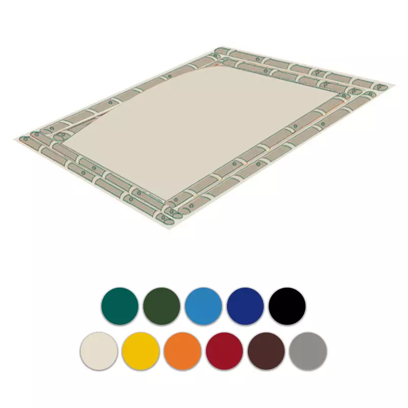 E' necessario fissare il telo tramite tubolari posti perimetralmente lungo il telo, che con il loro peso non permettono alla copertura di scivolare in vasca. Il telo galleggerà sull'acqua.