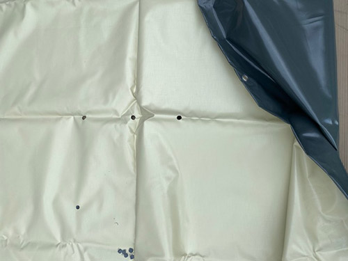 La copertura presenta dei fori di scolo che prevengono l'accumulo di acqua piovana sul telo ed eventuali strappi.