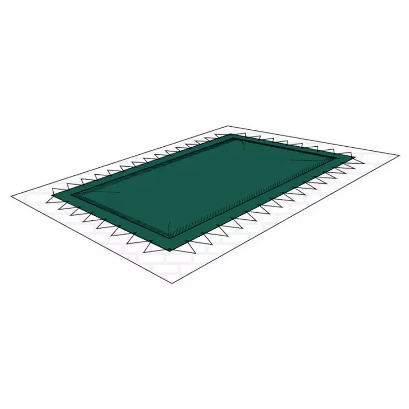 Nel caso di installazioni su vasce interrate è necessario fissare il telo con corda elastica e picchetti (su terreno) o pioli a scomparsa (su pavimento).