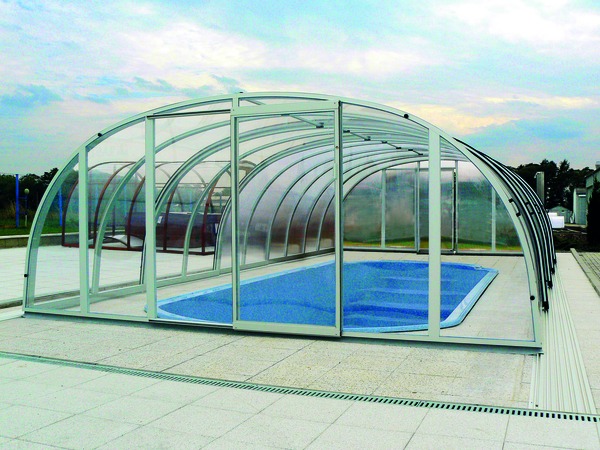 Le coperture da piscina Carolina dispongono di facciate rimovibili davanti e dietro.