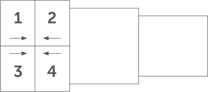 La porta scorrevole va installata sul modulo più grande e può essere posizionata sia sul lato destro che sinistro e con scorrimento verso l'interno o l'esterno.