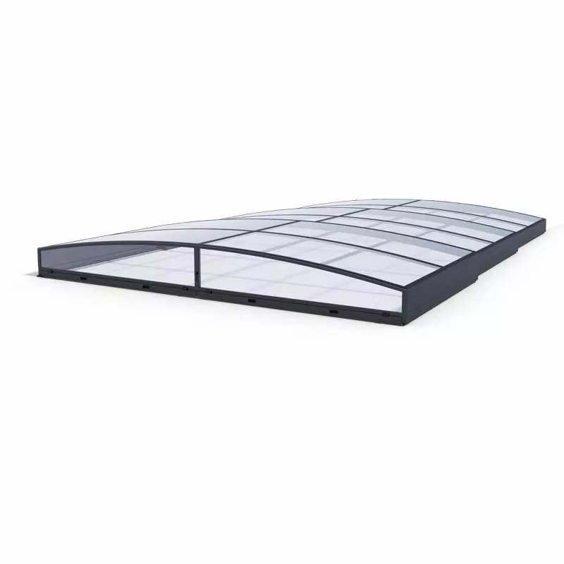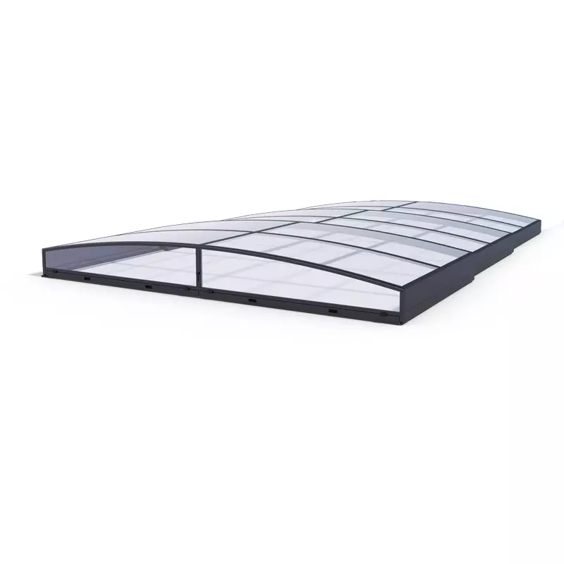 I moduli sono realizzati in policarbonato compatto con spessore di 4 mm. Questo materiale ha una manutenzione semplice e grazie alle sue proprietà termoisolanti, aiuta a riscaldare l'acqua della piscina e allo stesso tempo limita il passaggio dei raggi UV.