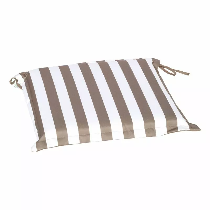 Cuscino da esterno per seduta, 38x38 cm con volant : SAHARA (righe bianche/beige/grigie)