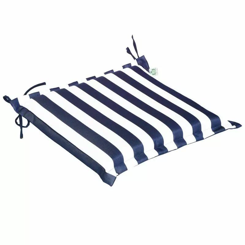 Cuscino da esterno per seduta, 38x38 cm con volant : ONDABLU (righe bianche/blu)