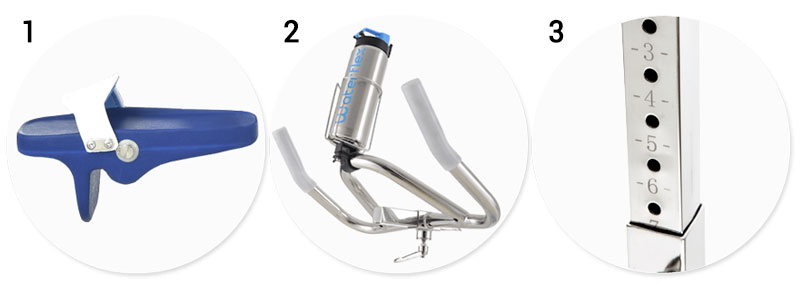 2. Manubrio: multiposizione, design ergonomico con protezione anti-impatto alla fine delle maniglie.
