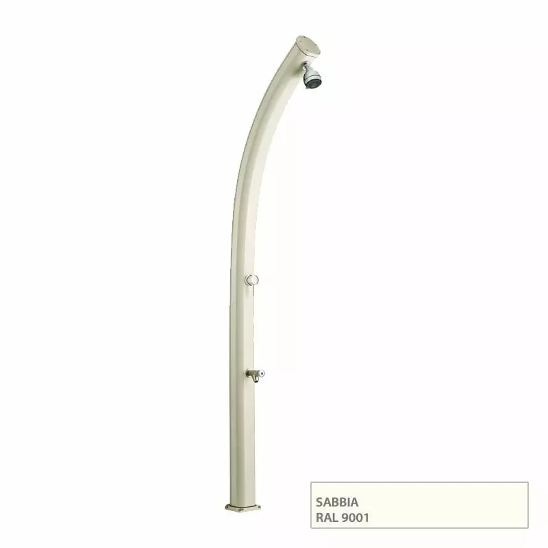Doccia da esterno ad acqua calda e fredda JOLLY CURVA in alluminio, con lavapiedi : Colore SABBIA
