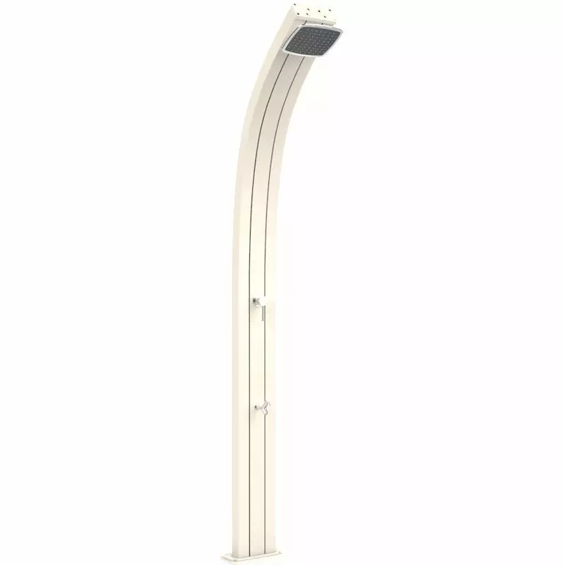 Una doccia tradizionale permette di avere acqua calda sempre disponibile, a qualunque ora del giorno o condizione atmosferica, grazie al collegamento diretto con l'impianto idrico casalingo.