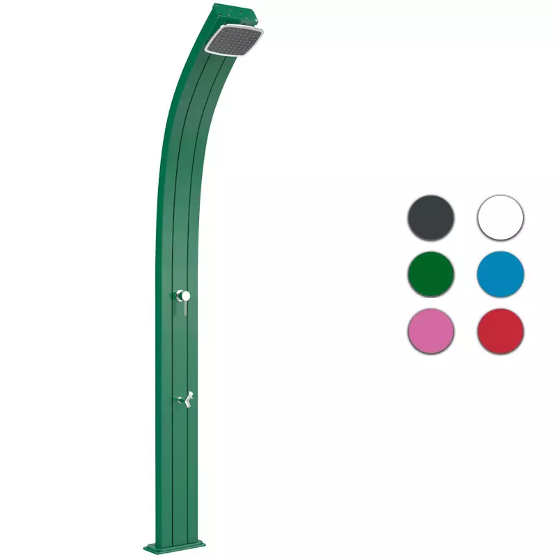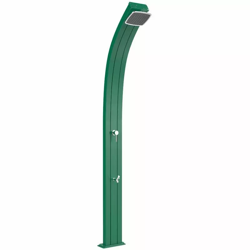 Doccia da esterno ad acqua calda e fredda SPRING CURVA in alluminio, con lavapiedi