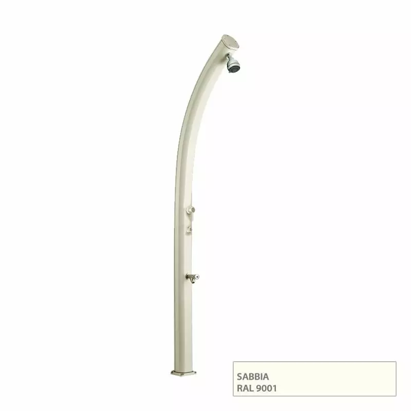 Doccia da giardino JOLLY CURVA con temporizzatore e lavapiedi, in alluminio