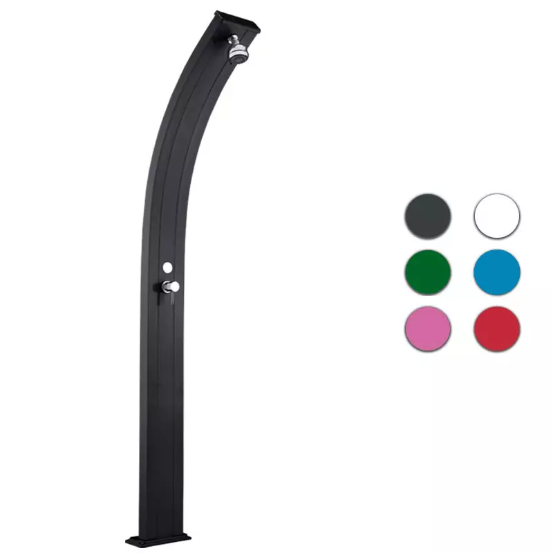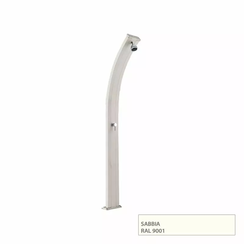 SPRING CURVA è una doccia tradizionale in alluminio trattato anticorrosione e verniciato a polvere in 8 splendidi colori. Il design affusolato la rende al contempo elegante e moderna.