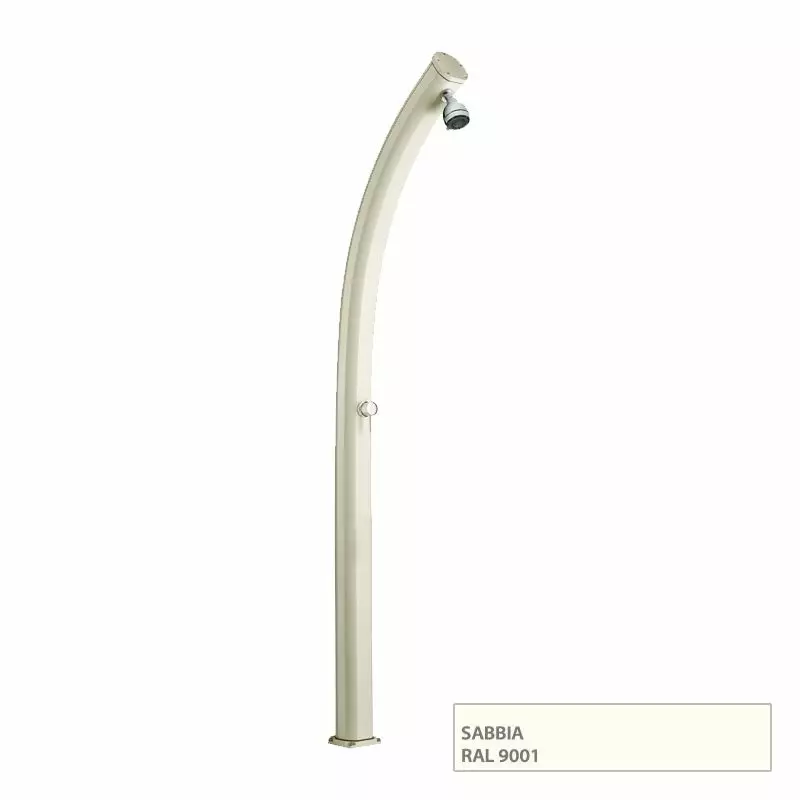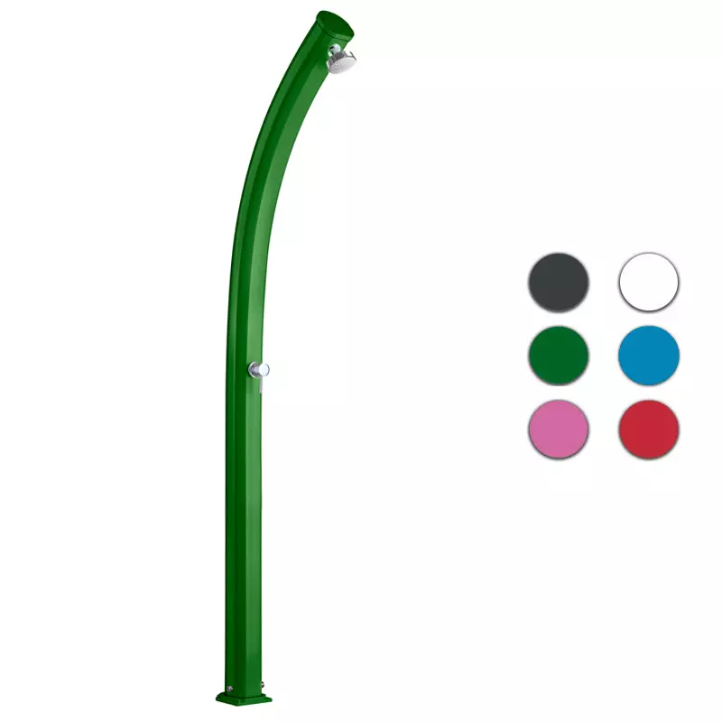 JOLLY è una doccia tradizionale con attacchi per acqua calda e fredda, Made in Italy e realizzata interamente in alluminio trattato anti corrosione.