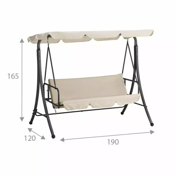 • Dimensioni dondolo: P 120 x L 190 x H 165 cm