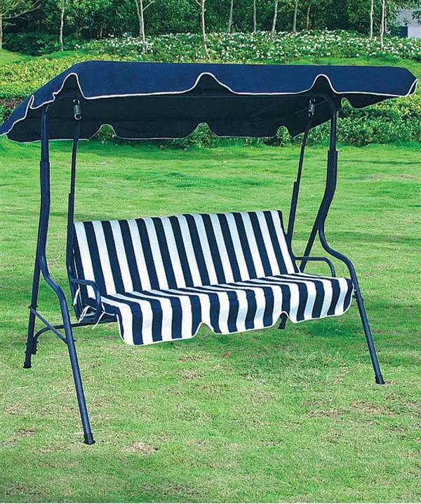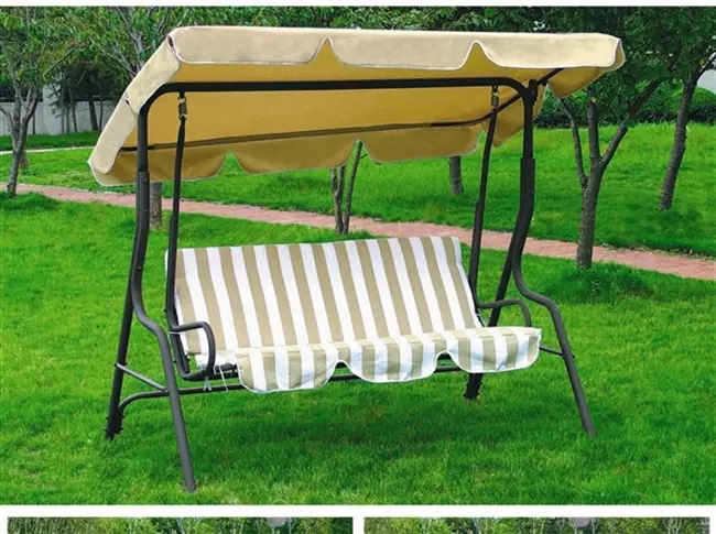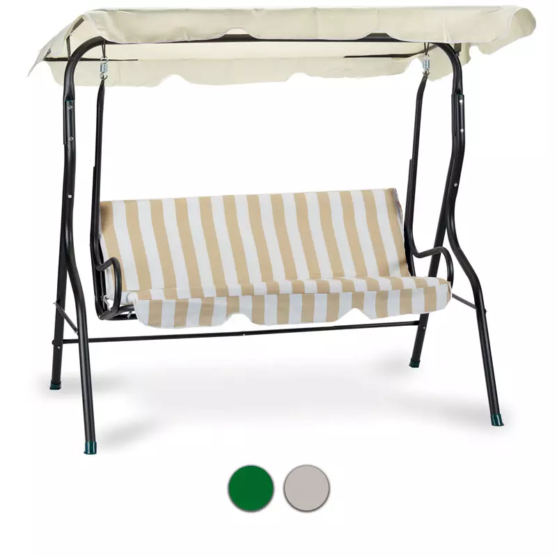 Dondolo da giardino in acciaio STRIP, 3 posti : Seduta RIGA BEIGE, tettuccio BEIGE tinta unita, struttura NERA