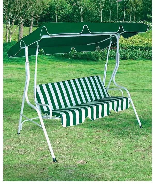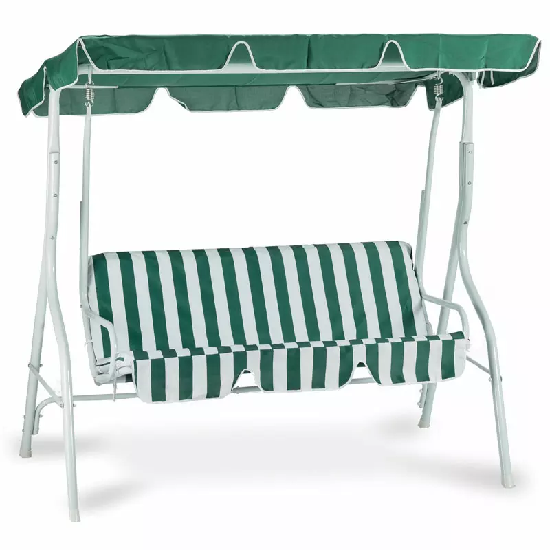 Dondolo da giardino in acciaio STRIP, 3 posti : Seduta RIGA VERDE, tettuccio VERDE tinta unita, struttura BIANCA
