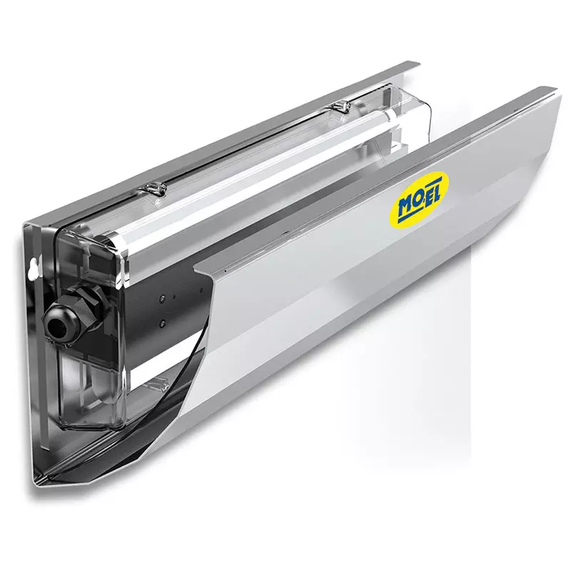 Il grado di protezione IP55 impedisce a grandi quantità di polvere di penetrare al suo interno e resiste agli spruzzi d'acqua provenienti da ogni direzione. Inoltre, le parti elettriche dell’apparecchio, comprese le lampade, sono completamente isolate, in modo da garantire un alto livello di sicurezza e il massimo rispetto delle norme igieniche.