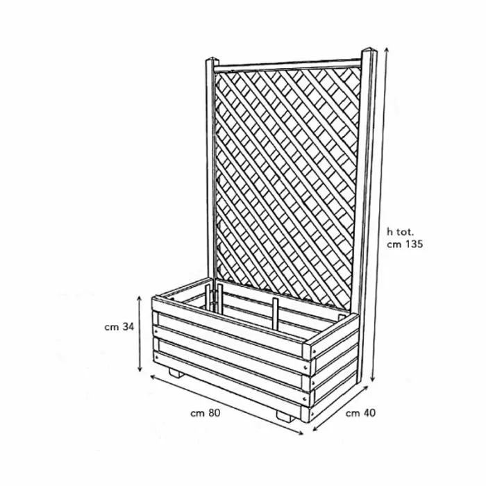 Fioriera in legno COMPOSIZIONE MARGHERITA con griglia 80x40x135 cm
