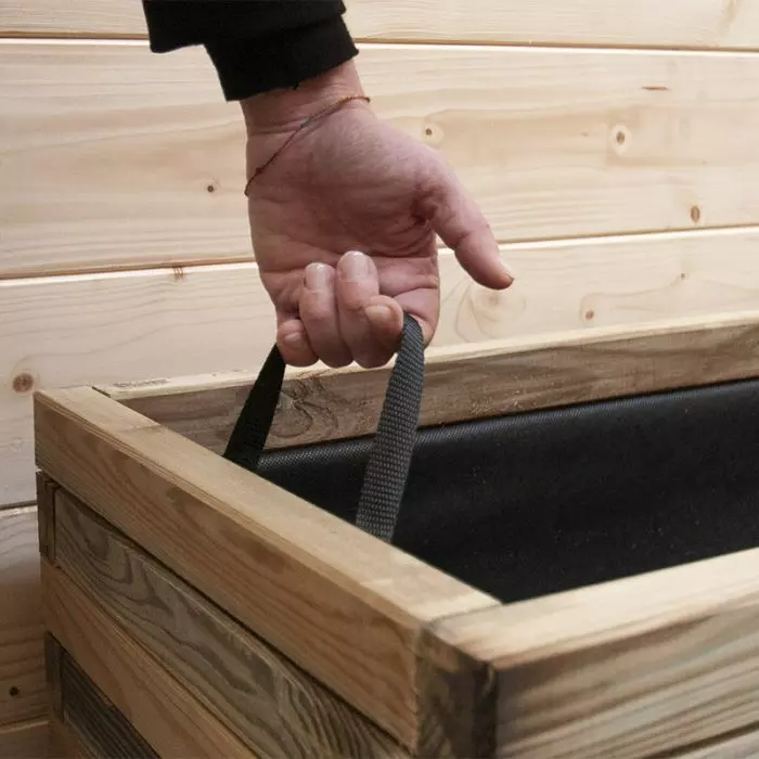 Fioriera in legno di pino impregnato in autoclave MAXI, resistente, duraturo e completo di textilene interno con maniglie, perfetto per decorare il tuo giardino con meravigliosi fiori e piante.