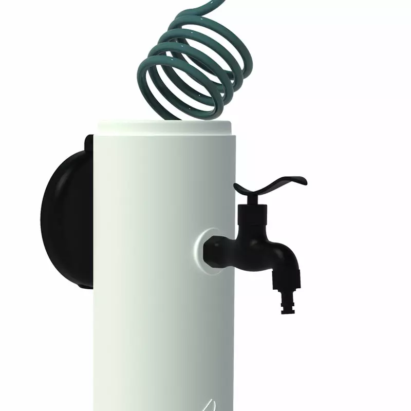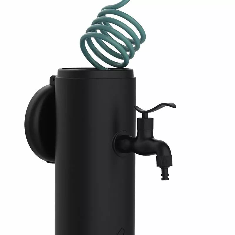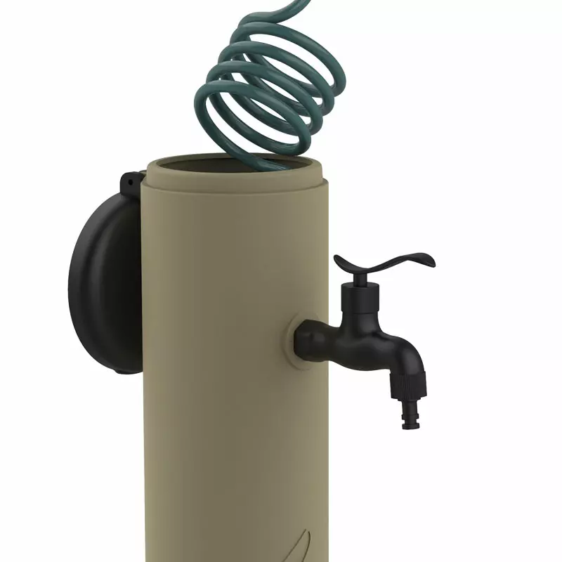 TRITONE PRO è elegante e discreta quando non utilizzata: il tubo flessibile infatti trova alloggio sotto il coperchio della fontanella.
