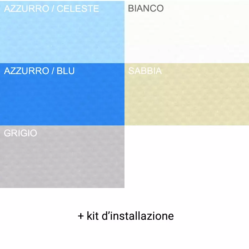 Colori disponibili per la membrana: sabbia, bianco, azzurro, blu e grigio chiaro.