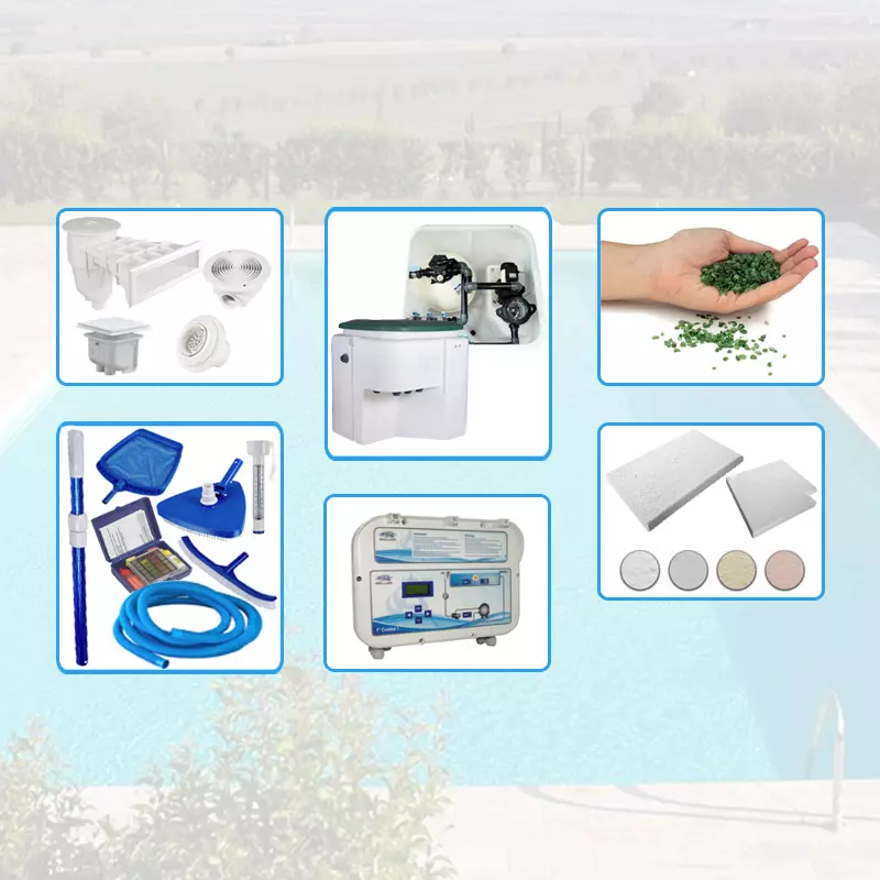I kit più accessoriati hanno anche i bordi, i kit di pulizia, il sistema di illuminazione notturno, la centralina per il dosaggio automatico dei prodotti chimici.