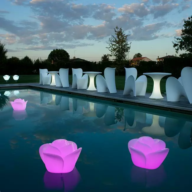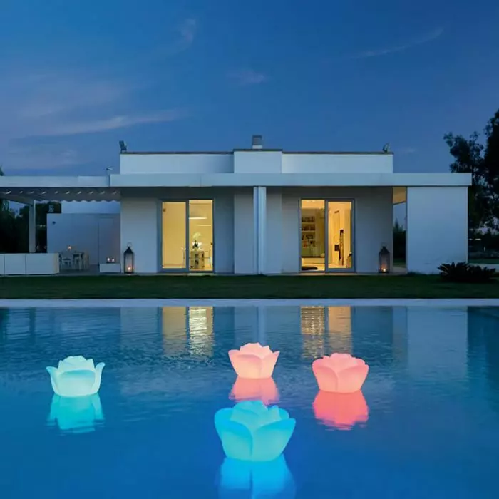 Bella e funzionale, BABY LOVE galleggiante è dotata di luce LED RGBW gestita tramite telecomando: e se vorremo creare un bouquet di rose potremo comandarle con un solo telecomando.