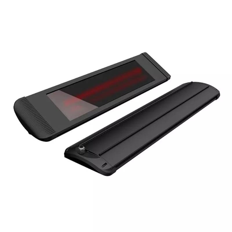 Il riscaldatore a infrarossi Aaren è disponibile in 2 potenze differenti, 1800 W o 2400 W e in 2 colorazioni (bianco o nero).