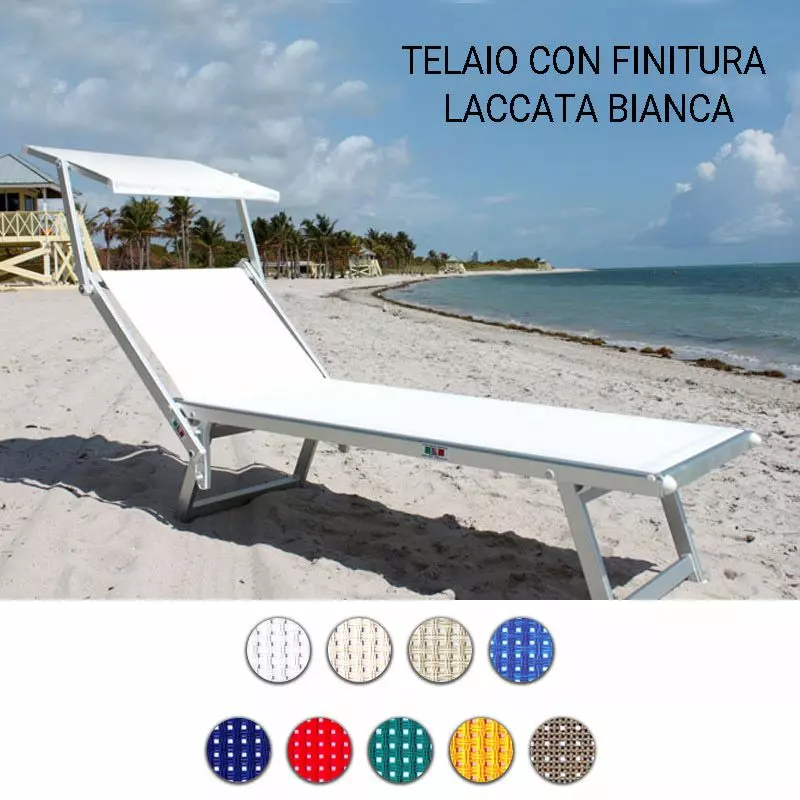Lettino da giardino KALIKA in alluminio, a 3 posizioni : Telaio con finitura laccato bianco