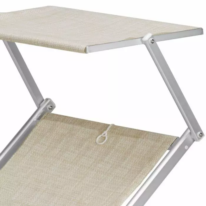 Struttura in alluminio, telo in resistente textilene microforato di colore beige.