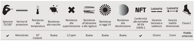 • Resistenza all'abrasione e ai graffi grazie alla vernice di protezione