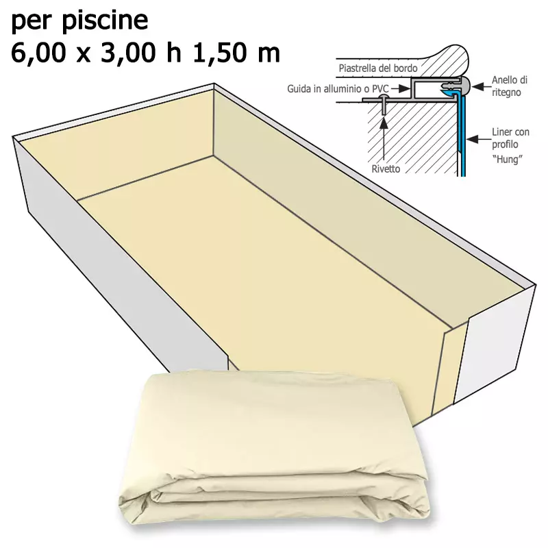 Rivestimento interno liner presaldato a sacco, colore sabbia in PVC 0,75 mm per piscina 6,00 x 3,00 h1,50 m