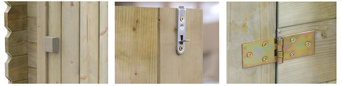(*) Il sistema di assemblaggio definito "blockhouse" si riferisce all'impiego di assi in legno massiccio con lavorazione maschio-femmina, in modo da avere tavole con incastro e sovrapposizione perfetti, senza necessità di utilizzare collanti o piastre di ancoraggio durante l'installazione.