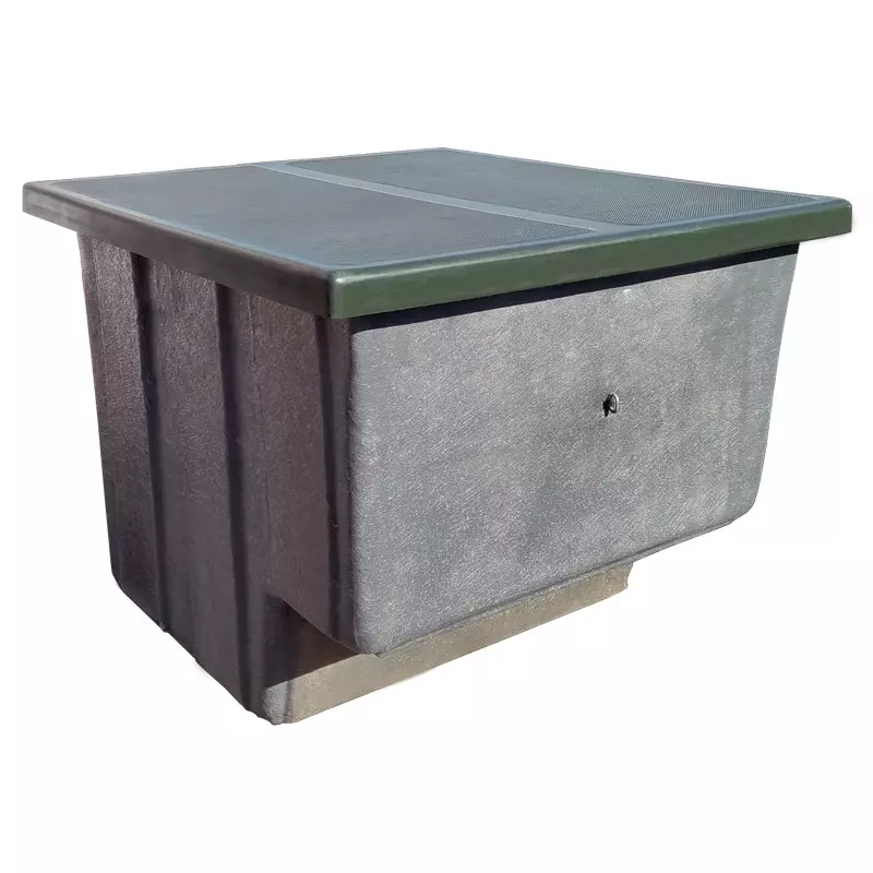 Realizzato in vetroresina, un materiale altamente resistente, ideale per questo tipo di utilizzo e dotato di coperchio con superficie antiscivolo calpestabile.