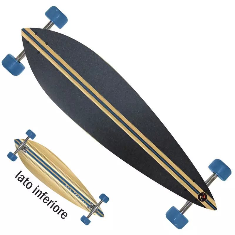 Diversa dallo skateboard per lunghezza e dimensione ruote, una longboard è adatta per chi cerca una tavola che assorba bene le asperità del terreno e magari se abbiamo necessità di utilizzarla come mezzo di trasporto per tragitti medio-lunghi (dove le norme stradali lo consentano).